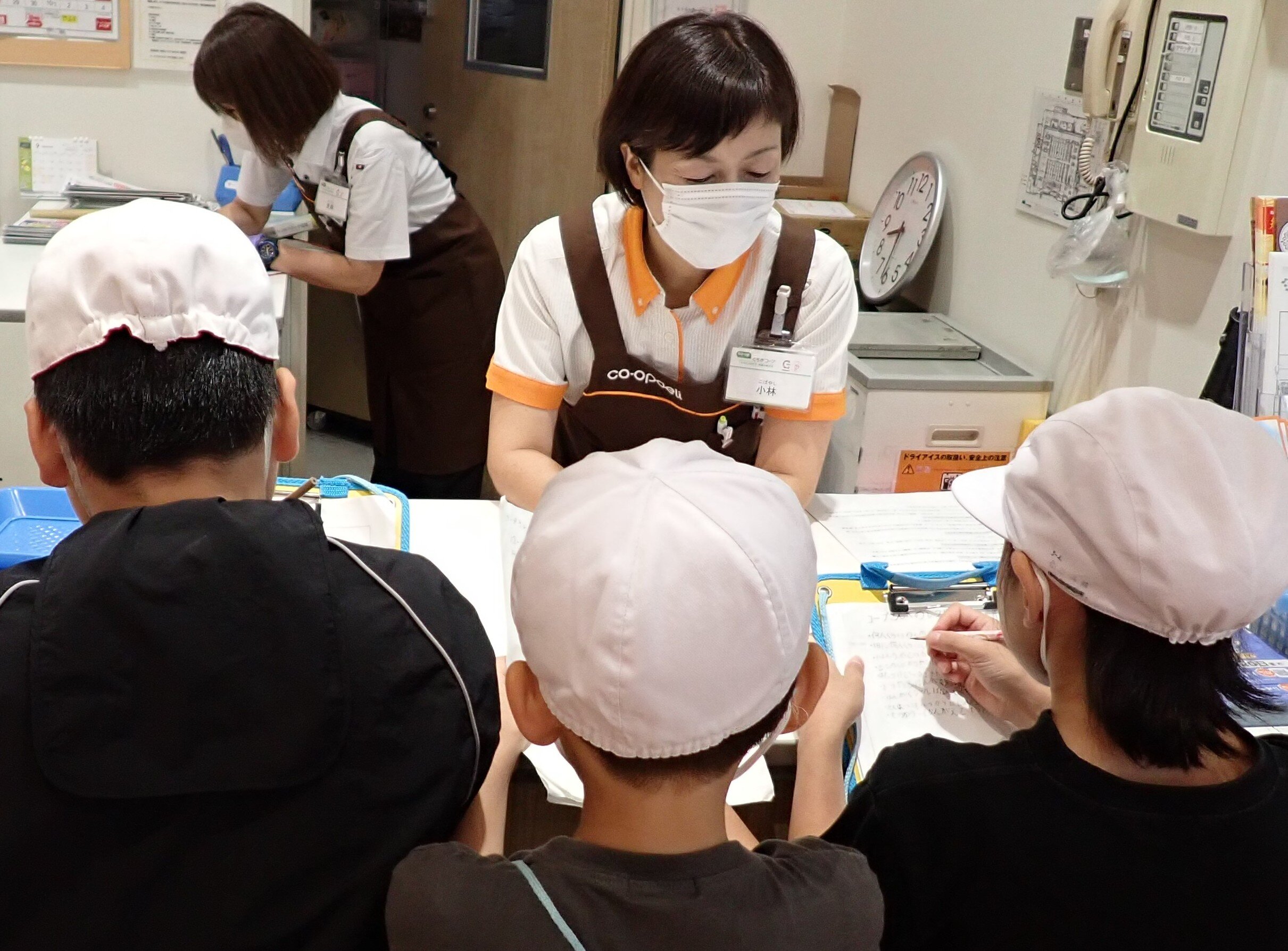 職員の説明を聞きながらバックヤードを見学したり、売り場をまわって職員へ質問するなど、お店の仕事を知っていただく機会となりました。児童からは、「1日に何人のお客さんがお店に来ますか」「お店で1番売れている商品は何ですか」「お客さんをお店に呼ぶために工夫していることはありますか」などたくさんの質問がありました。