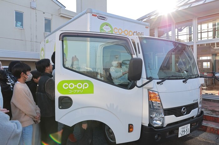 座学の後は宅配のトラックを見学。荷台や運転席に実際に乗るなどの体験をしていただきました。皆さん興味津々で参加されていました。