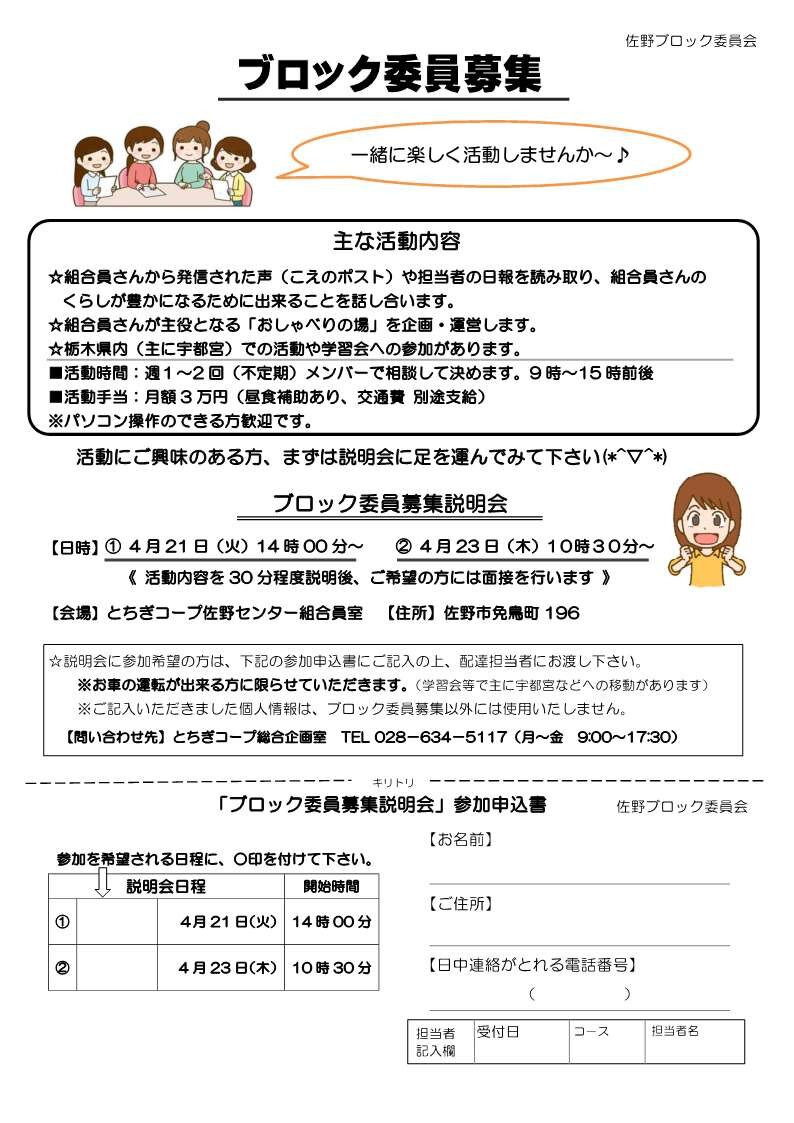☆説明会に参加希望の方は参加申込書にご記入の上、配達担当者にお渡しください。(ご記入いただきました個人情報は、ブロック委員募集以外には使用いたしません。)
