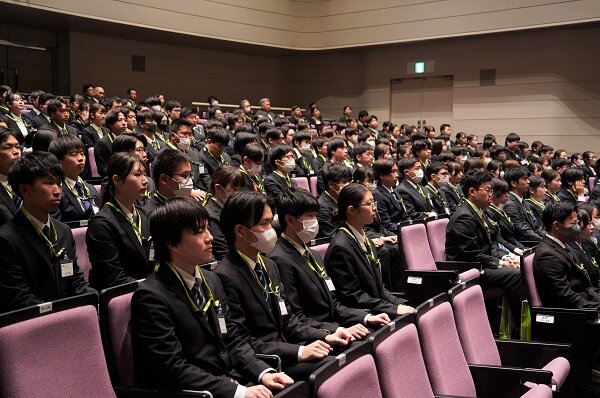 須加尾さんは「私は人と話すことが好きで、学生時代には相手の立場に立って伝え方を工夫することを大切にしてきました。これからはその経験を活かし、組合員一人ひとりに向き合い、安心と笑顔を届けられる職員を目指してまいります」、今井さんは「幼いころから生協の宅配職員が地域の方々の暮らしに寄り添う姿を見てきました。私も組合員の声に真摯に耳を傾け、誰もが安心して暮らせる社会づくりに力を尽くしてまいります」と力強く宣言しました。