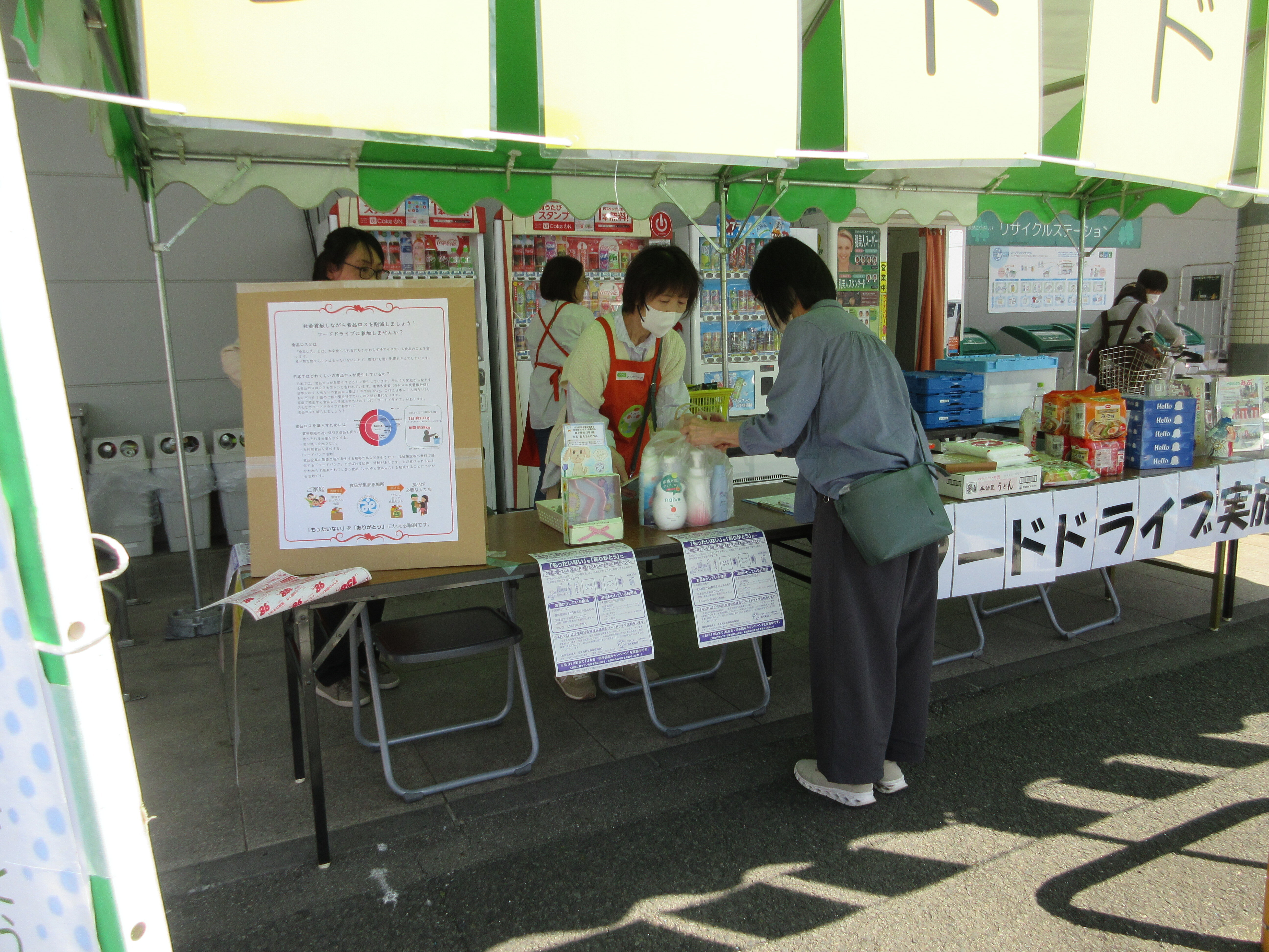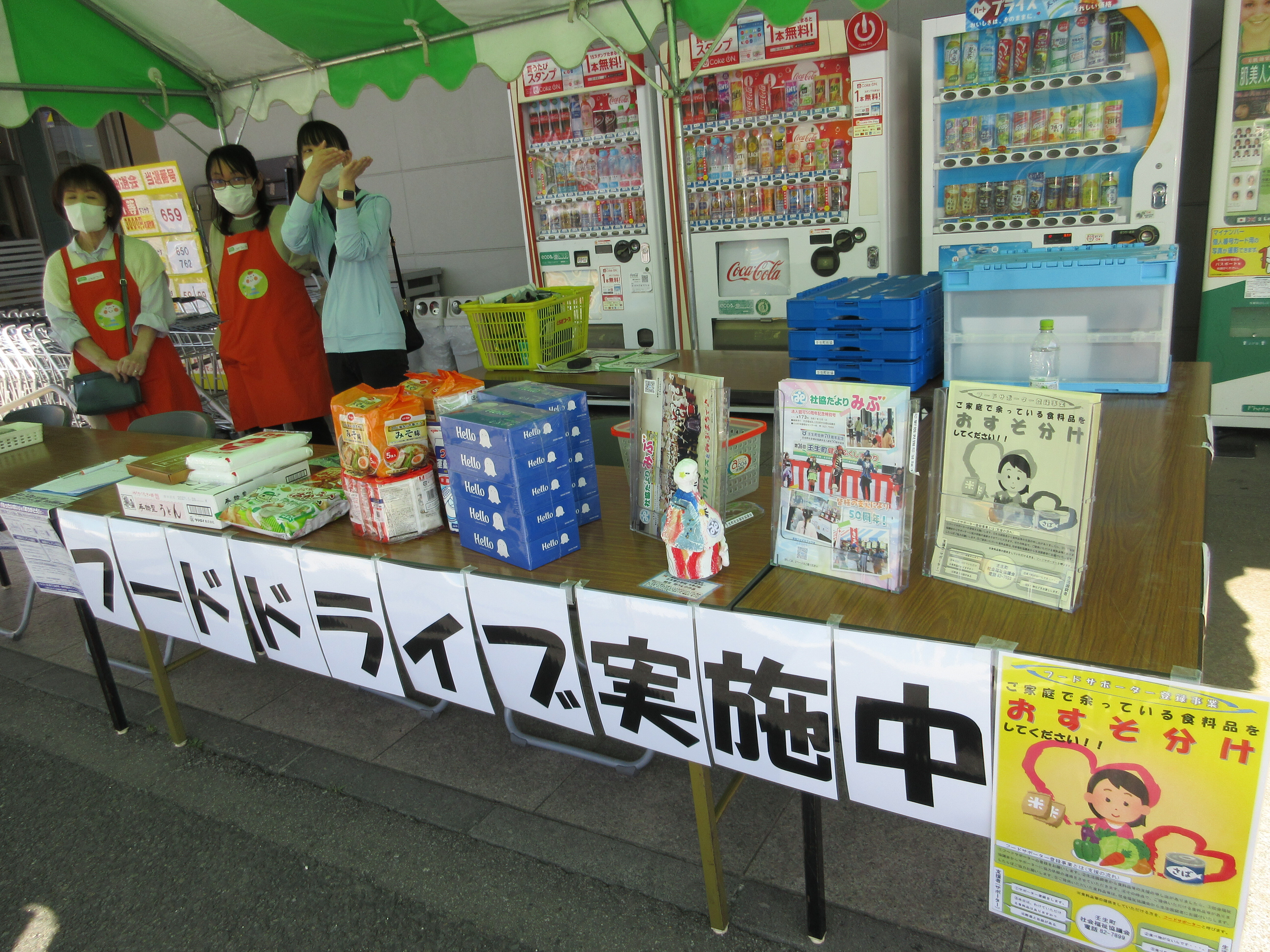 4月11日(土)コープおもちゃのまち店で、壬生町社会福祉協議会とフード&ライフドライブを開催しました。おだやかな好天のもと16件の参加があり、食料品81点・27.59㎏、日用品46点・15.32kgが寄せられました。来店された組合員の皆様、足を止めて関心をお寄せいただき、ありがとうございました。