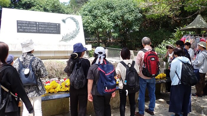 2日目・3日目は、親子中心コースのフィールドワークに参加しました。平和ガイドの案内で、首里城・ひめゆり平和祈念資料館・山城本部壕・魂魄(こんぱく)の塔・対馬丸(つしままる)記念館・嘉数(かかず)高台をめぐり、各地で学びを深める3日間になりました。