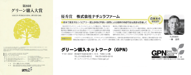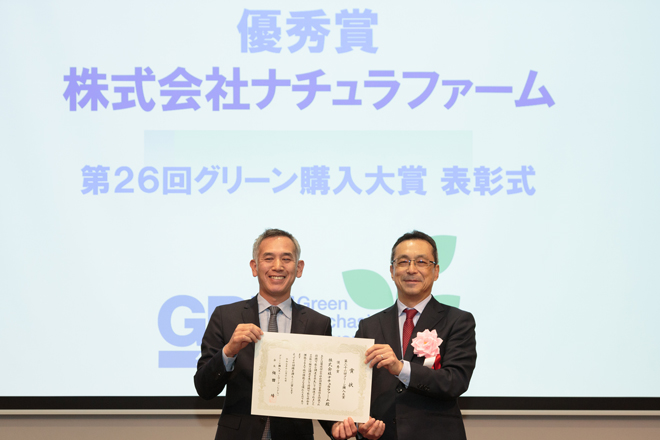 「株式会社ナチュラファーム」が2025年12月3日にグリーン購入ネットワーク(GPN)が主催する第26回グリーン購入大賞で「優秀賞」を受賞しました